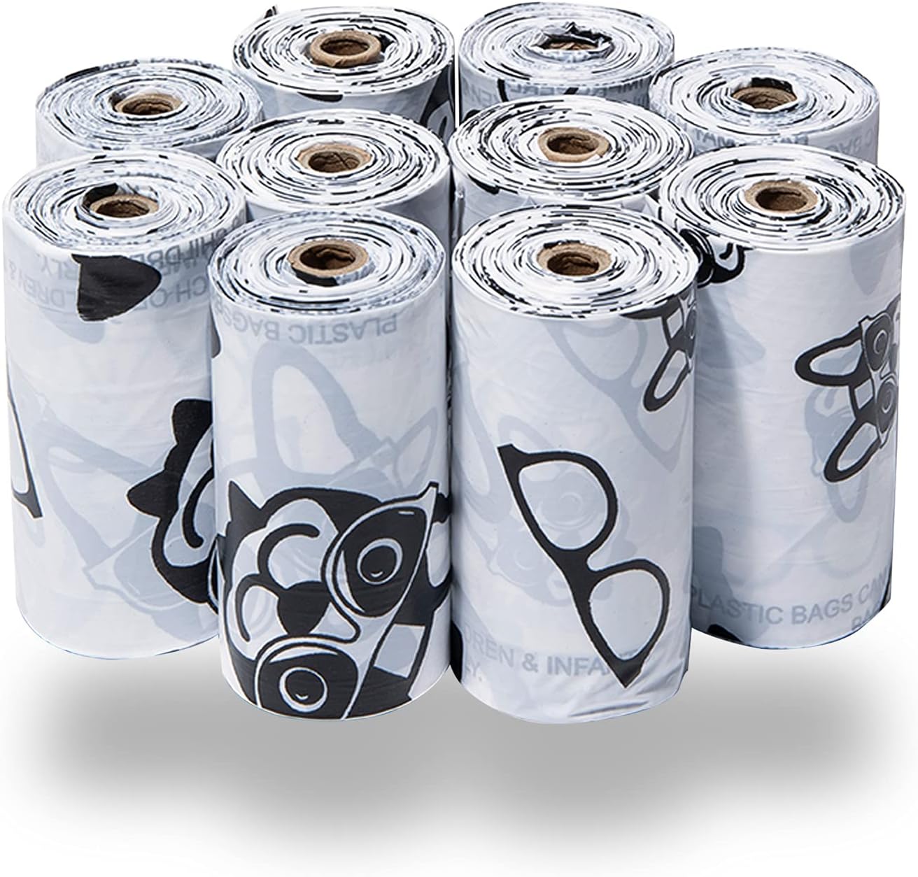 Best Pet Supplies Dog Poop Bags (150 Bags) for Waste Refuse Cleanup, Doggy Roll Replacements for Outdoor Puppy Walking and Travel, Leak Proof and Tear Resistant, Thick Plastic - White