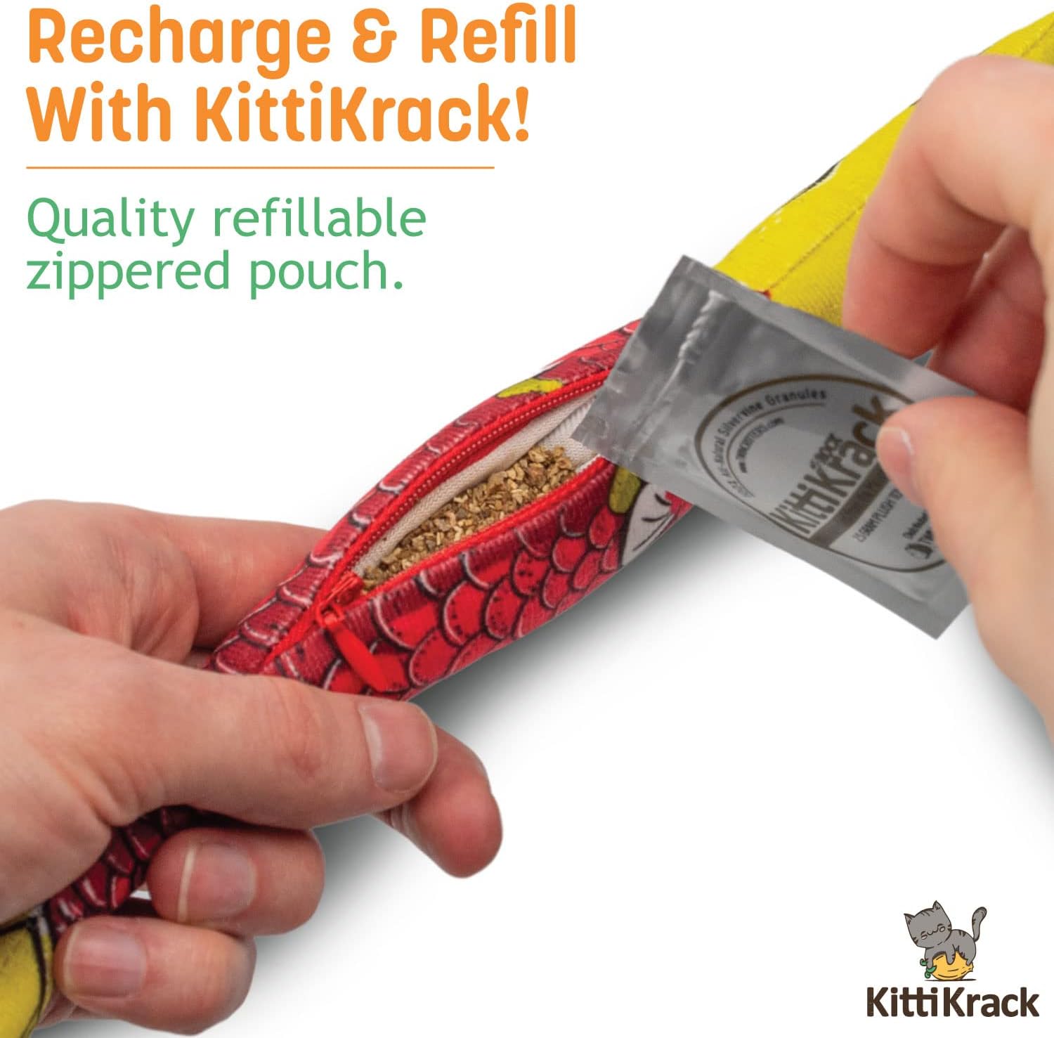- Refillable Cat Toy: Each Silvervine Sardine plush cat toy is able to be refilled with TWINCRITTERS KittiKrack Rock refills so your furry friend can keep the fun going! Our silver vine cat and kitten toys are a great compliment to regular cat treats and are purr-fect for playing, teething, and can stand up to the signature "kitty kicking".