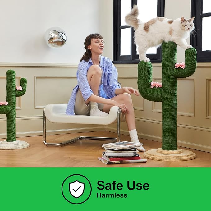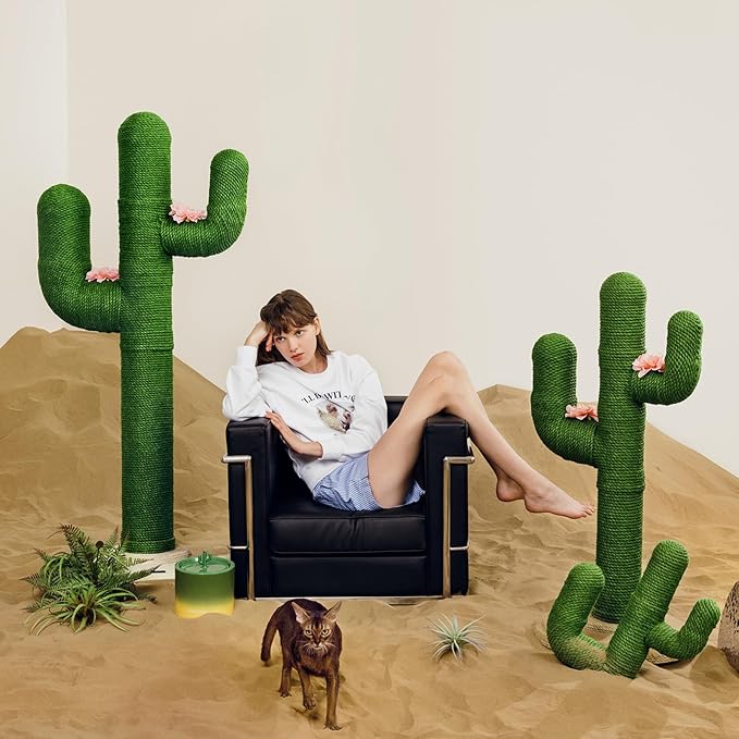 - 【Durable Jute Rope】The all-natural jute rope used in the construction of the Cactus Cat Tree is specifically chosen for its durability and texture, making it an ideal material for satisfying your cat's natural scratching instincts. Wrap the entire body tightly with jute rope from top to bottom, providing a more sturdy and long-lasting scratching surface.