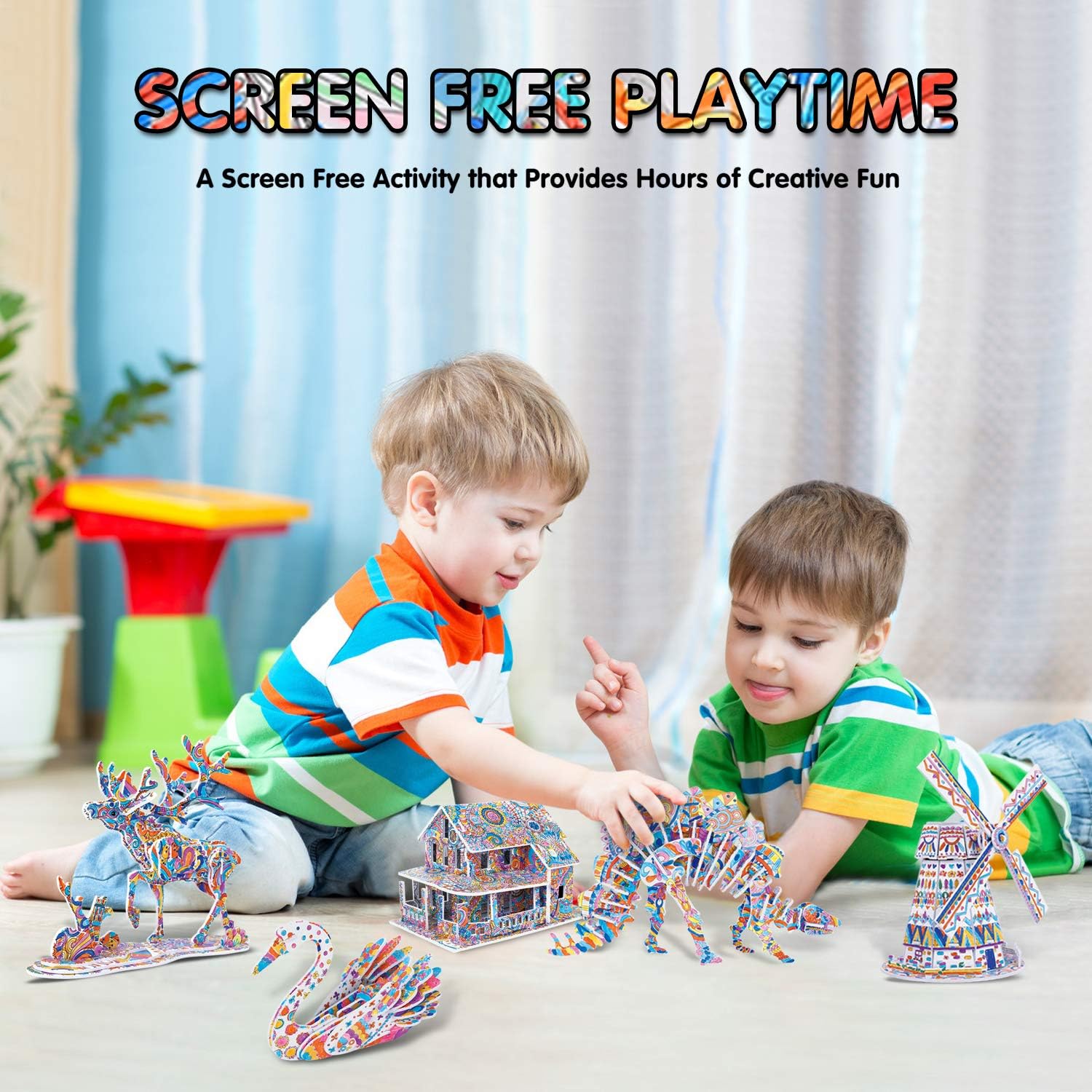BEARUN 3D Coloring Puzzle Set, Arts and Crafts for Girls and Boys Age 6 7 8 9 10 11 12 Year Old, Fun Educational Painting Crafts Kit with Supplies for Kids, Birthday Toy Gift for Kids