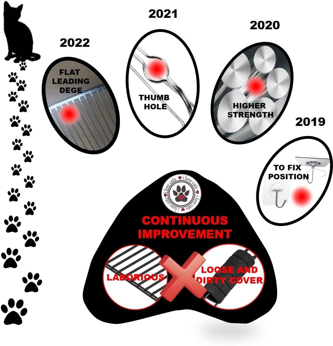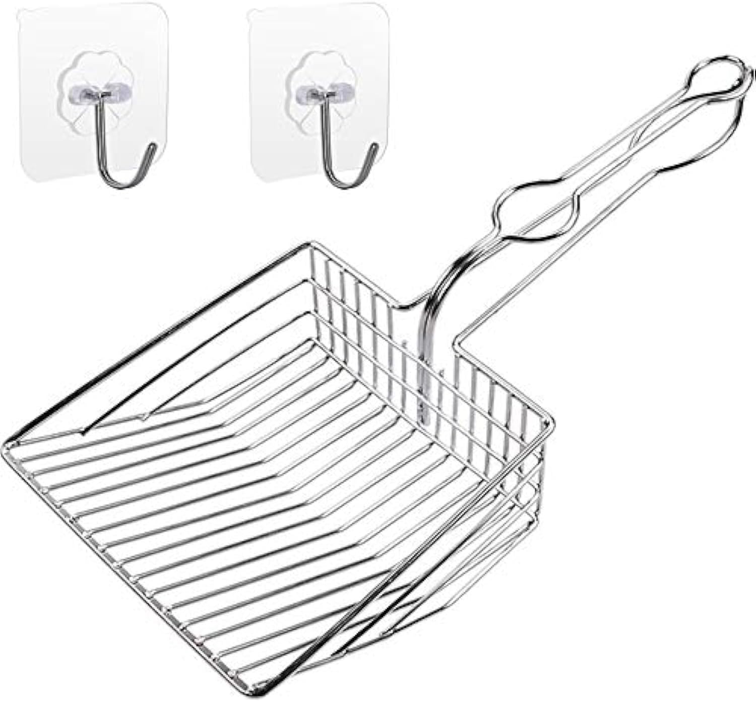 - 👍 【FAST metal litter scooper】 Made of ROUND and smooth stainless steel wires, NO stuck and LESS sticky, stays clean and easy to clean. The large deep shoveled metal cat scooper works with clumping cat litter like a breeze, fast and fun. NO shaking and shaking, NO clumps breaking, and for sure it will reduce dust and odor inhalation for health.