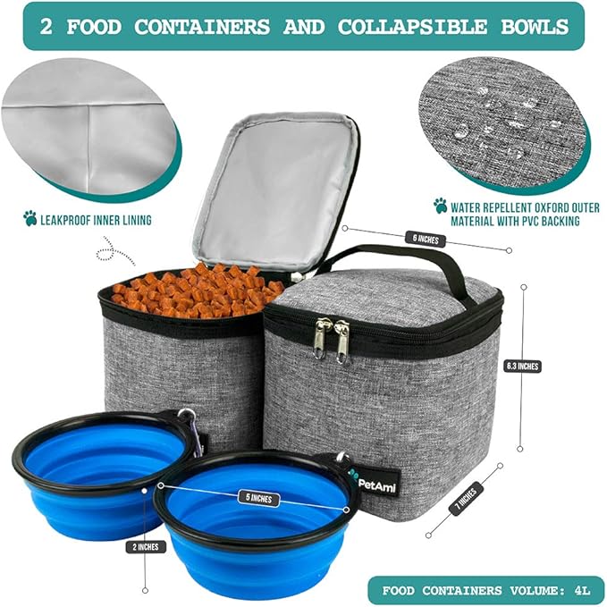 PetAmi Dog Travel Bag Backpack, Airline Approved Dog Bags for Traveling, Puppy Diaper Bag Supplies, Pet Camping Essentials Hiking Accessories Dog Mom Gift, Food Container, Collapsible Bowls, Gray
