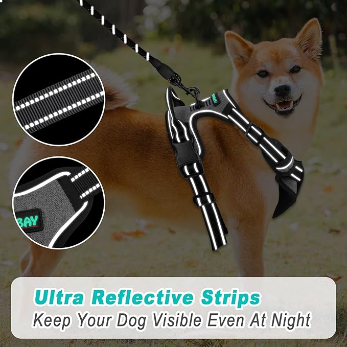 BARKBAY No Pull Dog Harness Large Step in Reflective Dog Harness with Front Clip and Easy Control Handle for Walking Training Running(Flint Gray,L)