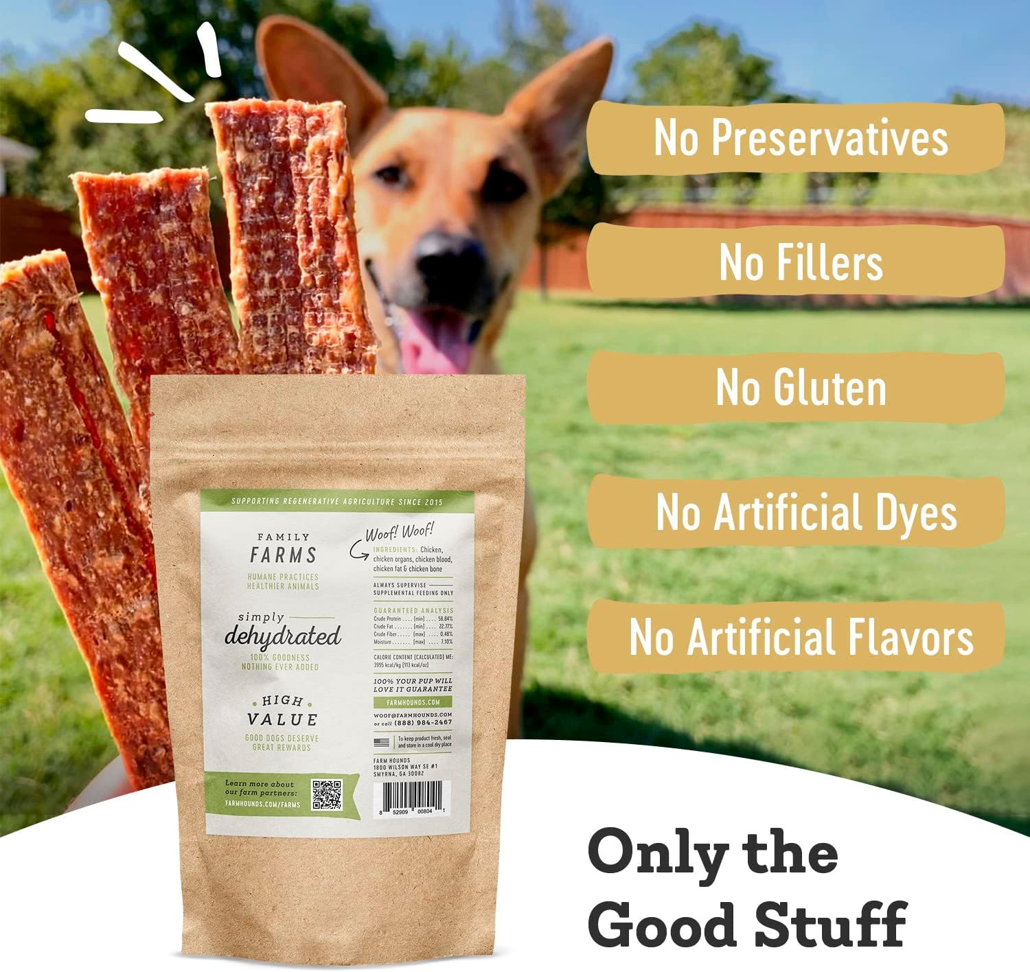 - QUALITY NATURAL INGREDIENTS - Transparently sourced from 100% pasture-raised chicken, these dog chews are a perfect blend of chicken muscle meat, organ, fat, bone and blood, all essential for a well-rounded carnivore diet. With the power of dehydration, we offer your pups treats that are free of salt, sugar, fillers and chemicals.