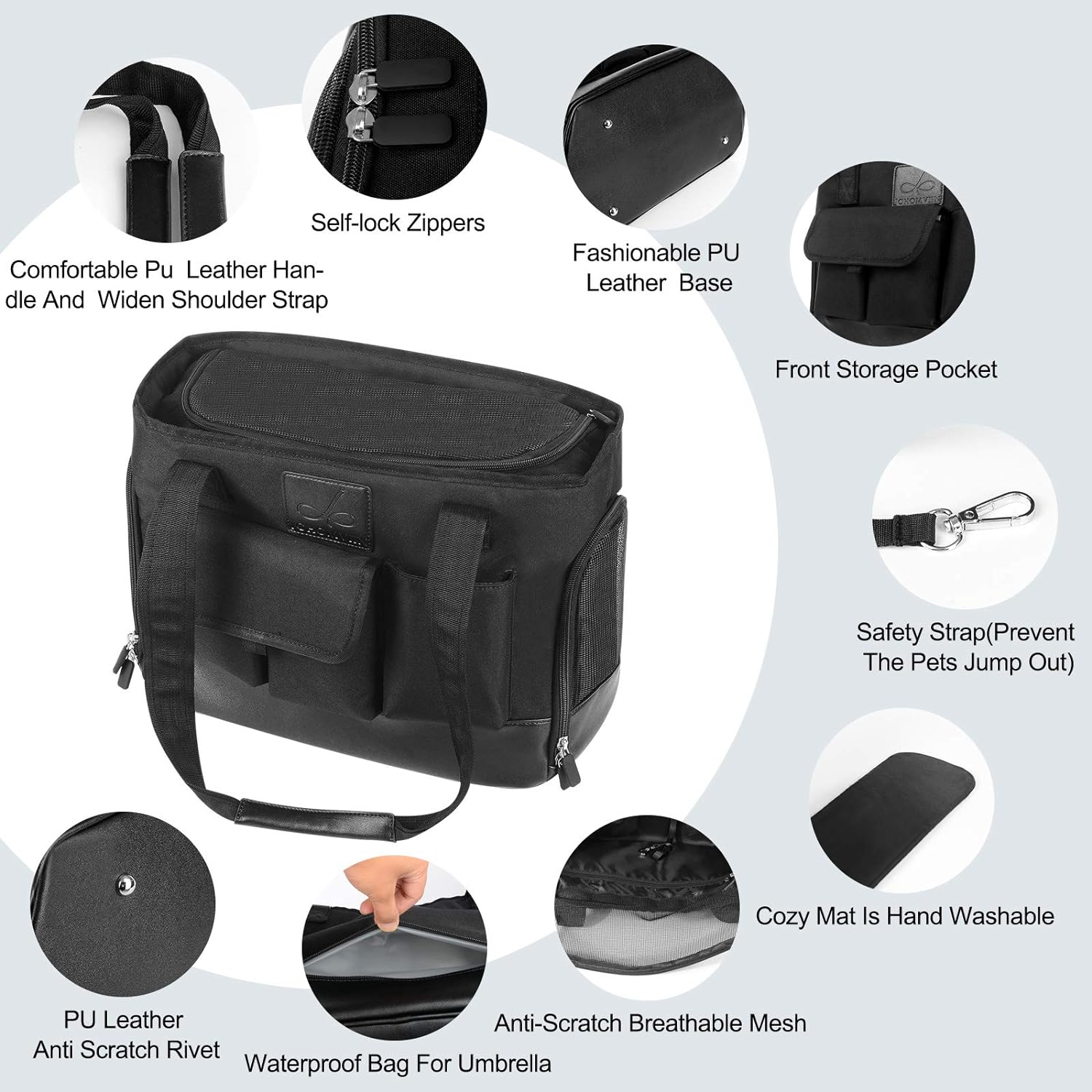 - 【Practical and multifunctional】The five inner and outer pockets can easily carry some necessities for pets such as poop bags, pet treats, keys, etc. The unique umbrella bag design at the rear can easily cope with rain and snow.
