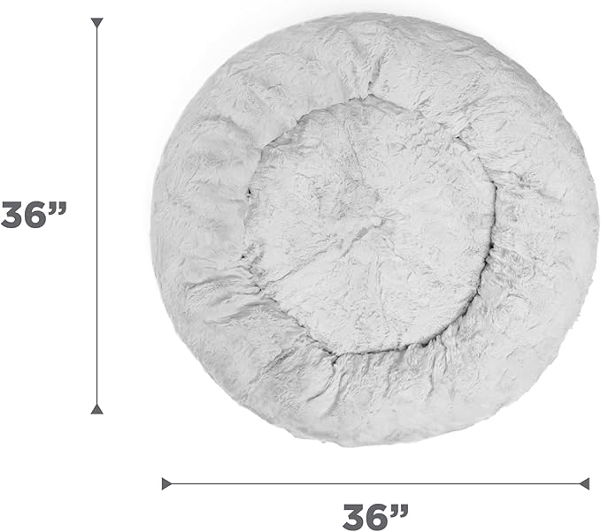 Best Friends by Sheri Original Calming Donut Dog and Cat Bed, Lux Faux Fur, Gray, (36in x 36in) - Anxiety Relief for Pets Up to 100 lbs