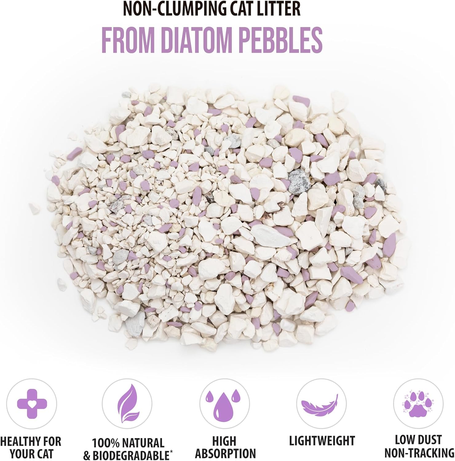 Skoon All Natural Cat Litter (1 Bag) - Lavender - Lightweight, Low Tracking, Non-Clumping Diatom Pebbles Absorb, Lock, and Seal Waste for Best Odor Control