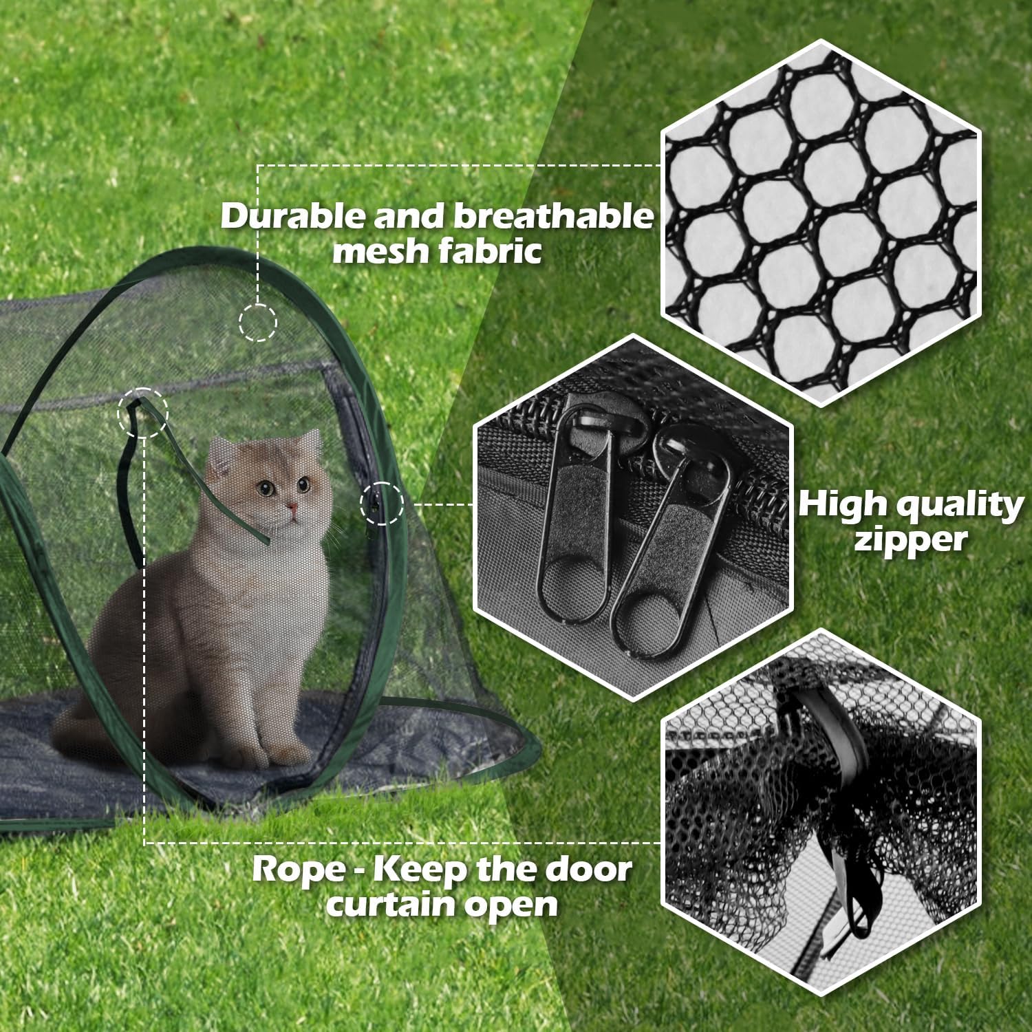 - Warm Reminder - The cat tent can not only ventilate, but also allow parents to see the condition of the kitten at any time. If your kitten is sensitive to grass or outdoor ground, don't forget to bring a blanket or foam bed.