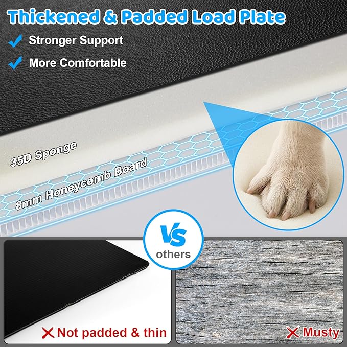 - Ultimate Comfort: The padded hard bottom is built in 7-layer protection. The hard plate is covered with a layer of 35D sponge to enhance comfort, and held in place by premium non-woven fabric, so it's easy to remove for easy cleaning of the dog car seat cover. Plus, the thickened PP hollow board plate is more durable than others' wood base