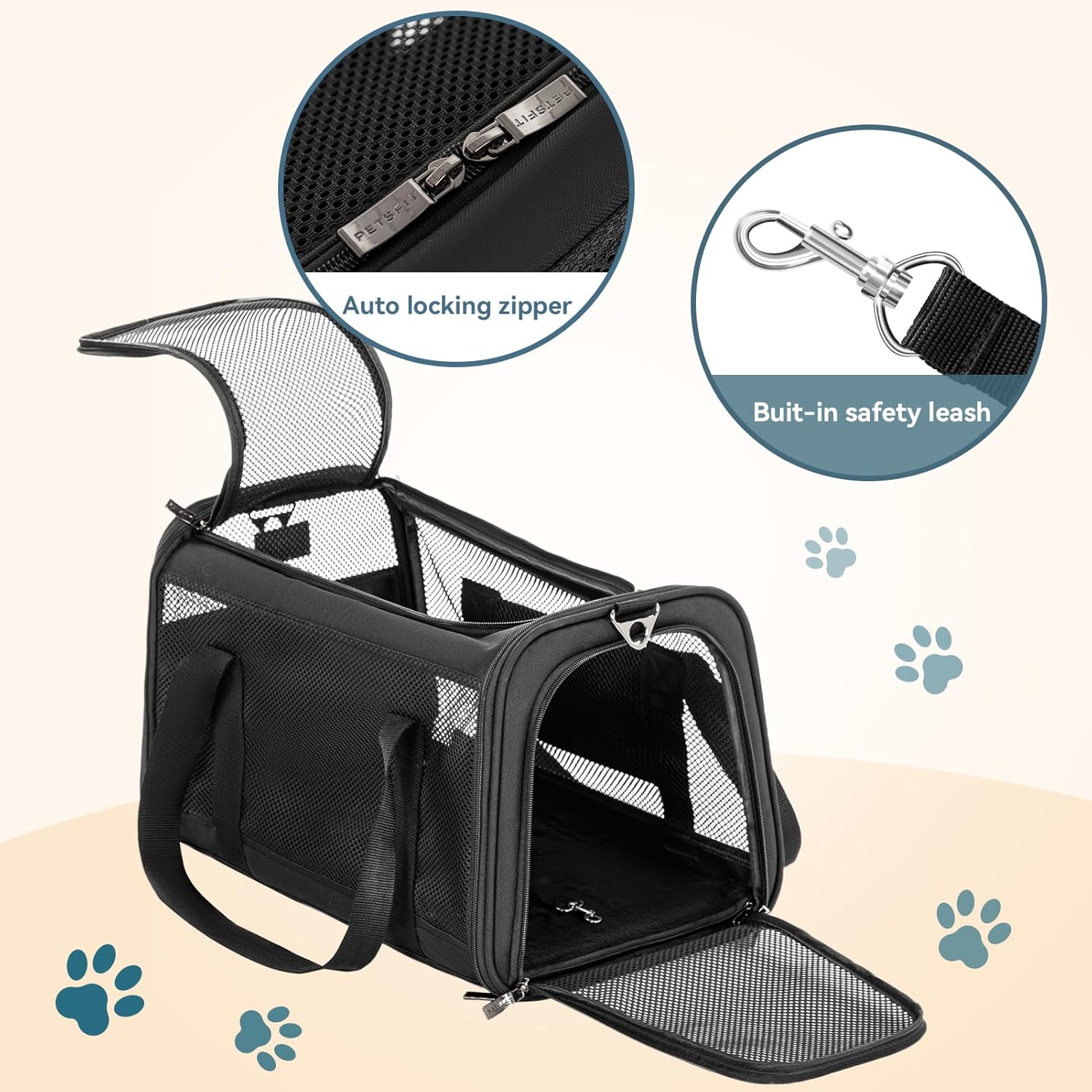Petsfit Airline Approved Dog Carrier Cat Carrier, Soft-Sided Collapsible Pet Carrier for Travel, 3 Carrying Ways, Lightweight and Ventilation on 5 Sides, Escape Proof, with Soft Fleece Pad
