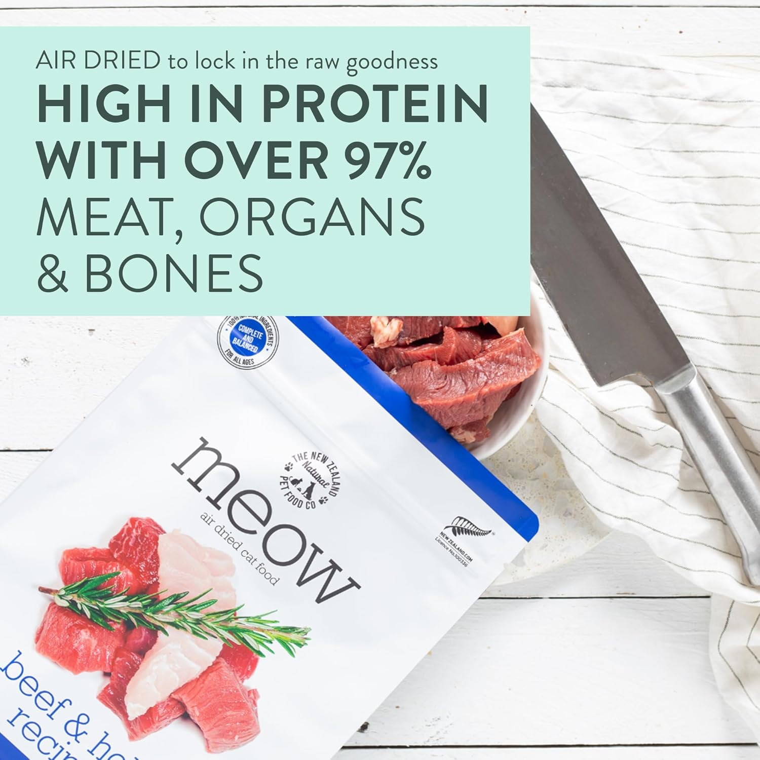 Meow Air Dried Cat Food - Beef & Hoki Recipe,High Protein Dry Cat Food, Training Treats, Meals & Toppers,3.5oz
