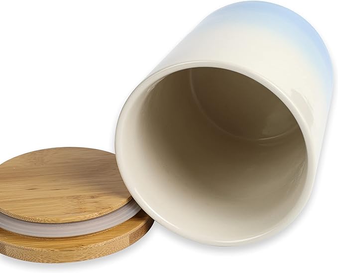 Arthausen Vintage Blue Ceramic Storage Jar Canister for Flour Sugar - Airtight Bamboo Lid w/Silicone Seal, Spoon - Modern Abstract Art Design for Kitchen Counter Bathroom - 4 cup / 1080mL