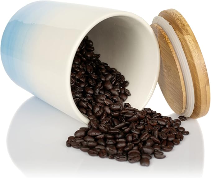 - ~ Bamboo Spoon Included ~ Each canister comes with an attractive, smooth-bowled spoon designed to scoop out a teaspoon or two. The design of this ceramic container makes it ideal for storing at home on the counter for easy access