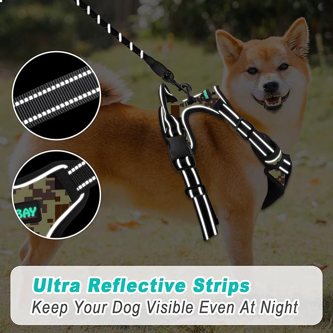 BARKBAY No Pull Dog Harness Large Step in Reflective Dog Harness with Front Clip and Easy Control Handle for Walking Training Running(Desert camo,S)
