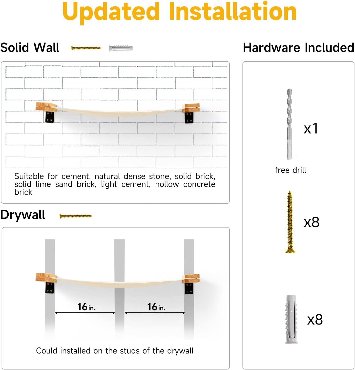 - LARGE AND STYLISH CAT WALL SHELF - 34x13 inch our long cat wall shelf gives cats plenty of space to perch upon they can feel free sleeping, playing, napping, running.