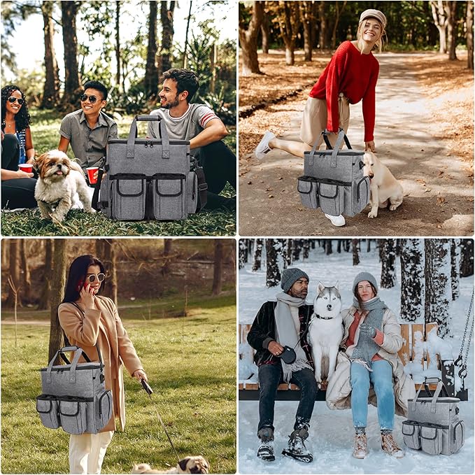 - Dog Travel Accessories: two detachable pet training bags make the pet organizer more functional.The on-the-go dog treat pouch can carry your dog's favorite treat and toys.With big opening and drawstring closure allows quick access to pouch with one hand.You can also securely store your personal belongings, such as phone, keys, or wallet in the pouch.Perfect choice for dog training at the park
