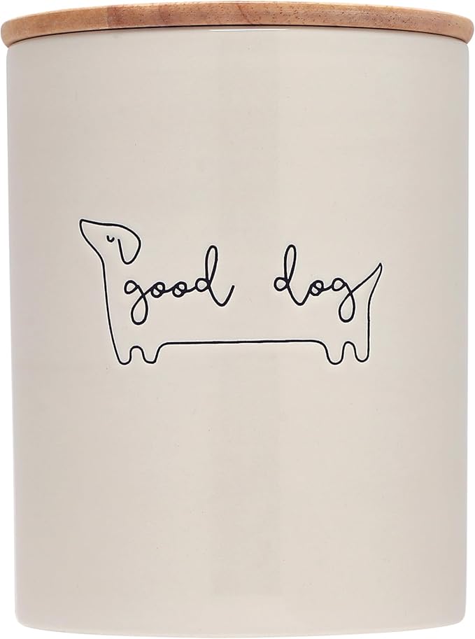 - Modern Neutral Ceramic Dog Treat Jar: Keep your dog’s favorite snacks fresh and your kitchen looking beautiful with Pearhead’s “Good Dog” treat jar. This ceramic dog treat container features a minimalist white finish and embossed lettering that blends perfectly with farmhouse, boho, or modern décor styles — a chic upgrade for any pet-loving home.
