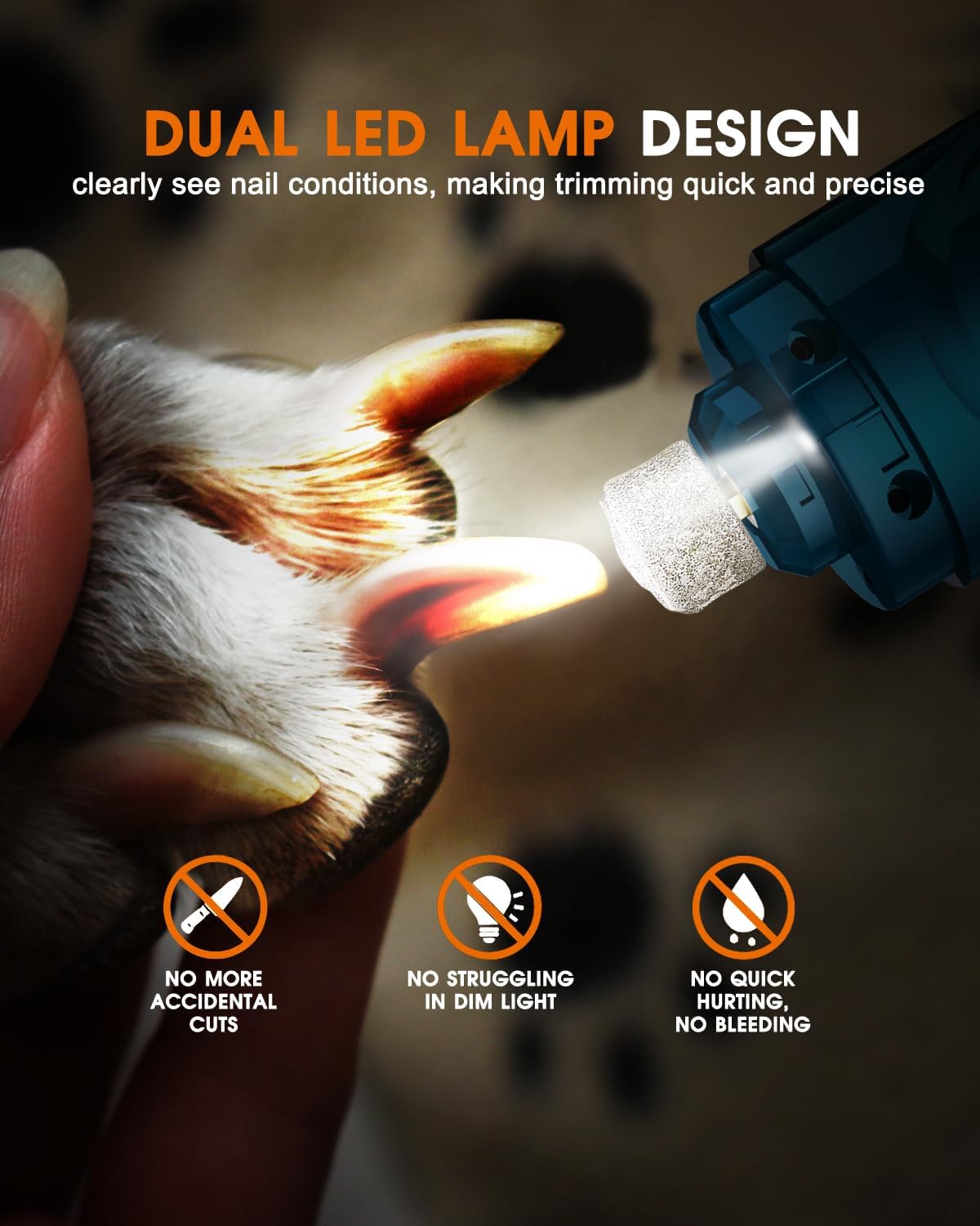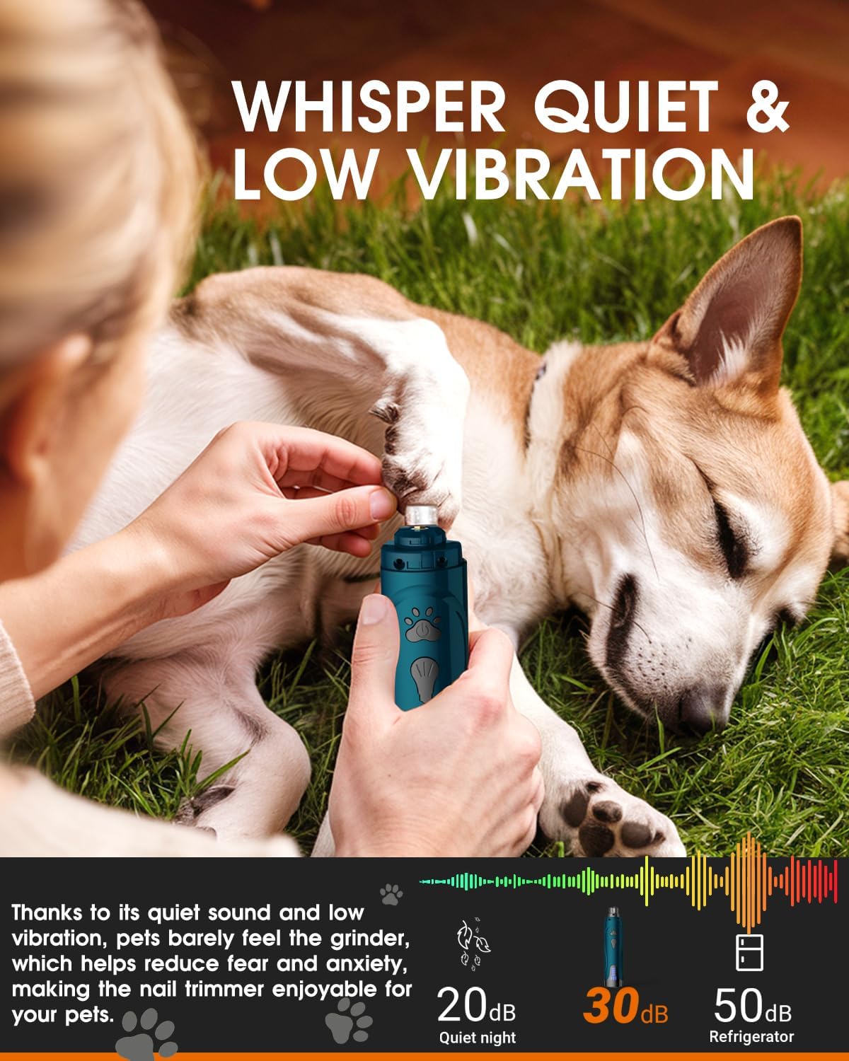 - 🔕Super Quiet, Low Vibration🔕: The working sound is lower than 30dB, NO freaking out our pet anymore. the nail grinding can be done even when pet is sleeping