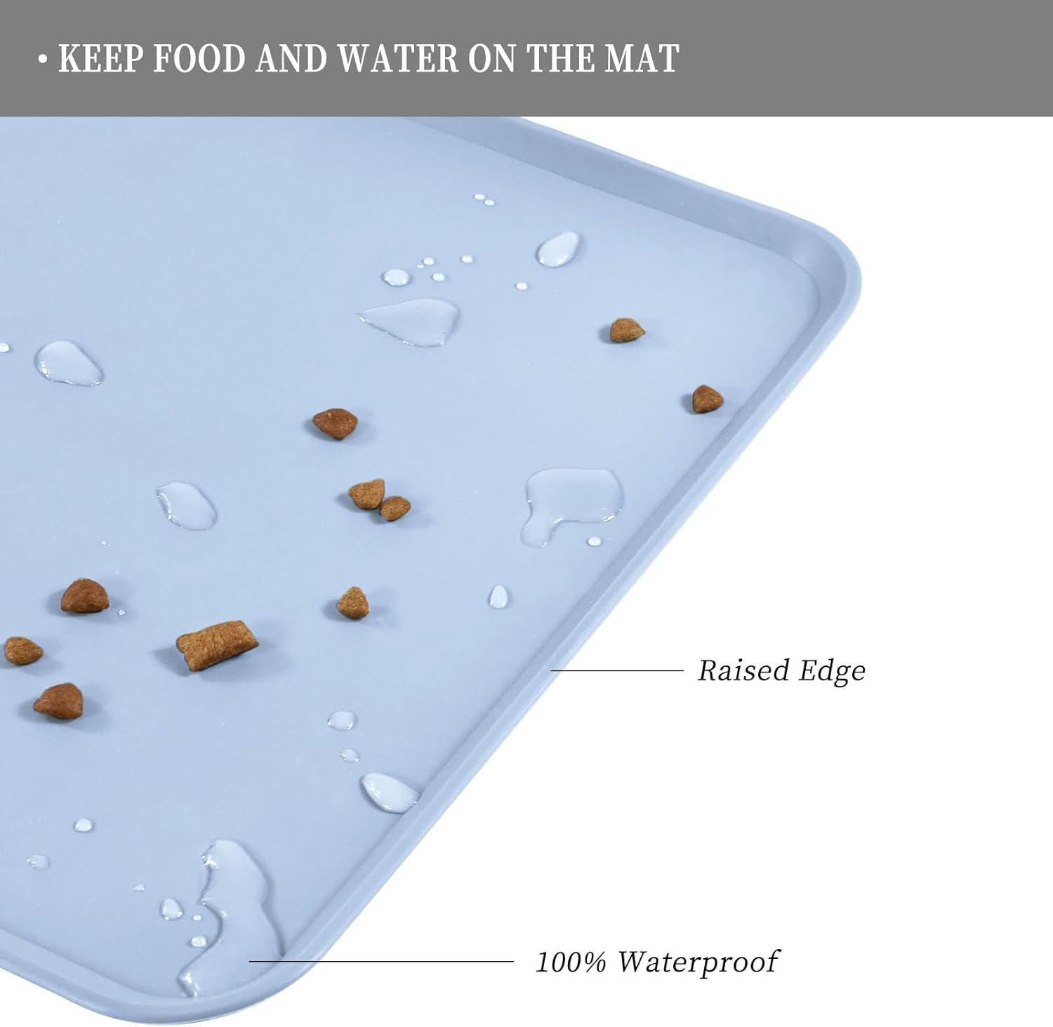 Waterproof Pet Feeding Mat with High Raised Edges, Heavier and Thicker Placemats for Cat Dog Water Bowl with BPA Free, Dogs Cats Food Mats for Messy Drinkers to Prevent Spill and Protect Floors