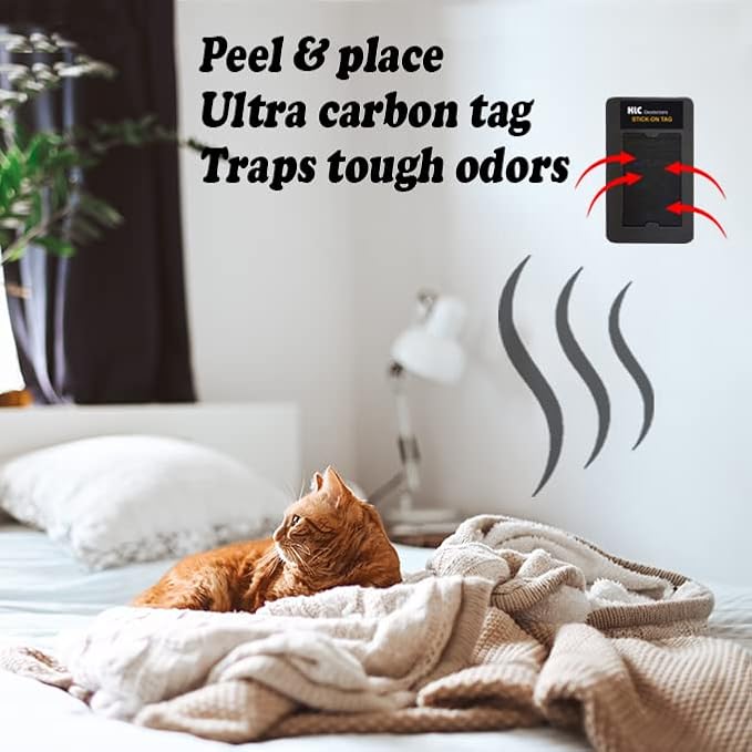 KLC Pet Odor Eliminator Home |Charcoal Stick-On Tag |2-pack | Deodorizer For Cat Box, Dog Crate, Pet Box|Cat Litter Odor Remover|Litter Box Deodorizer| Home Cat Odor & Dog Odor Absorber