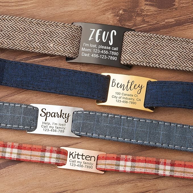 - Fun Design Pet ID Tags - Personalized laser engraved pet tags with your pet's name and contact information. A fashion color plated name tag for your beloved dog, cat, or other small animals. Handmade with love.
