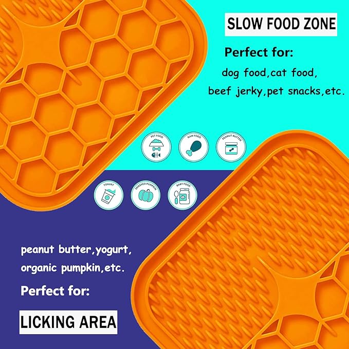 - ★ SLOW FEEDER DESIGN - Slow feeder Lick mat make your pet slow eat to protect stomach, reduces the risk of choking bloat, choking and overeating, Promote your pet's mental and physical health.