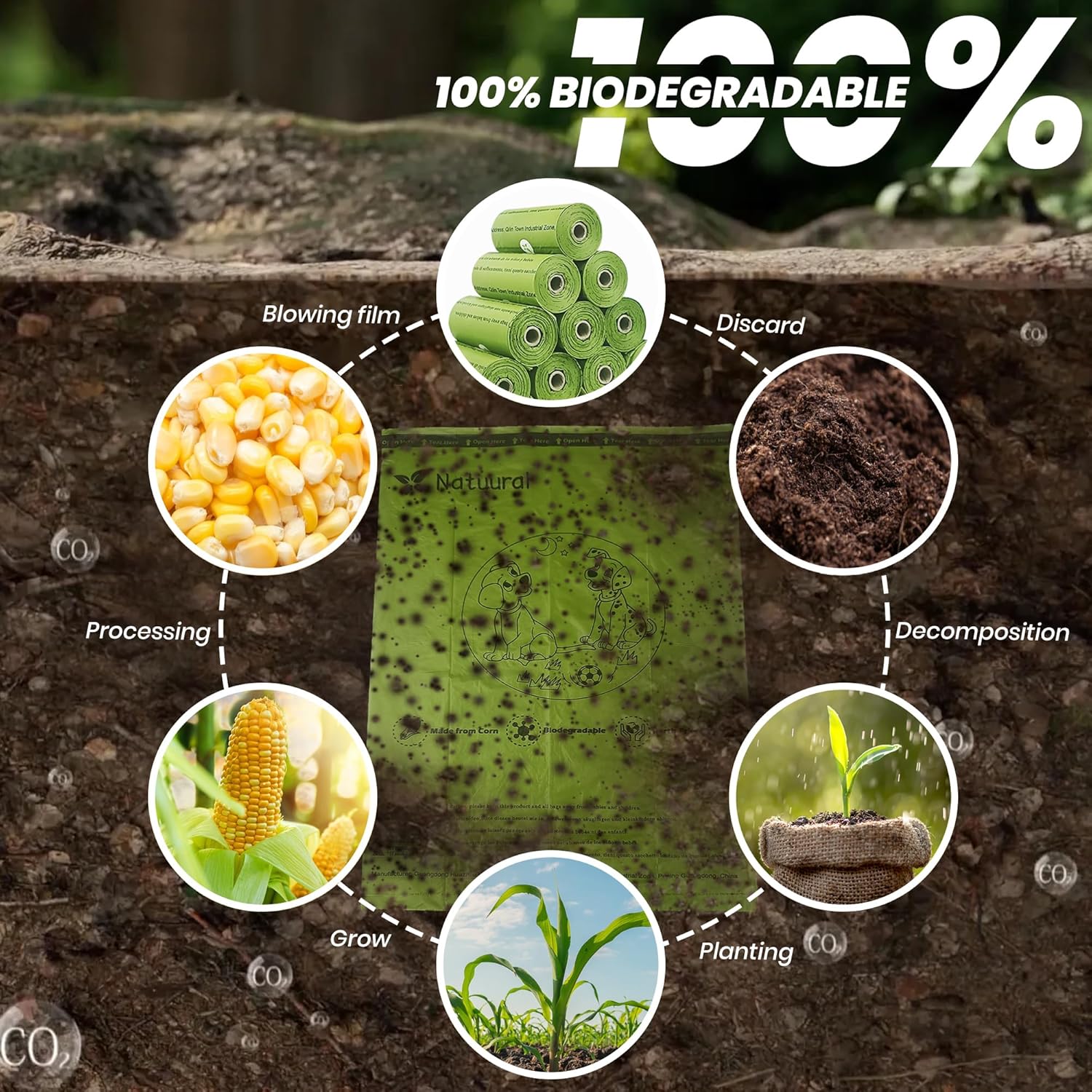 - Green & Strong: These biodegradable poop bags are designed from cornstarch materials, leakproof and tear resistant, that effectively locks in odors.