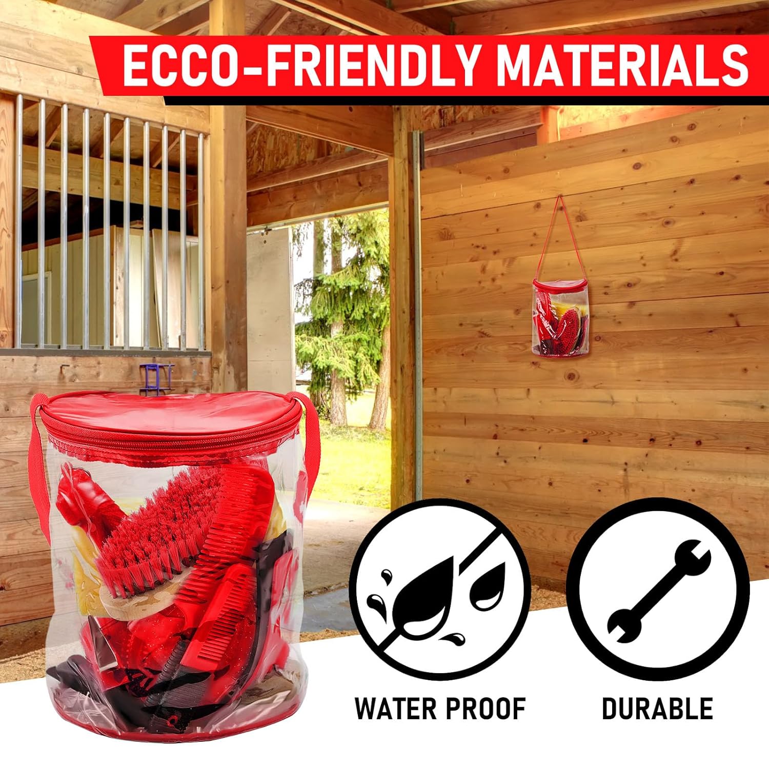 9 Pieces Horse Grooming Kit Tack Room Supplies Set with Organizer Tote Bag, Oval Massage Curry, Hard and Soft Brush, Hoof Pick, Sweat Scraper, Bathing Sponge, Combs for Horse Riders Beginners (Red)