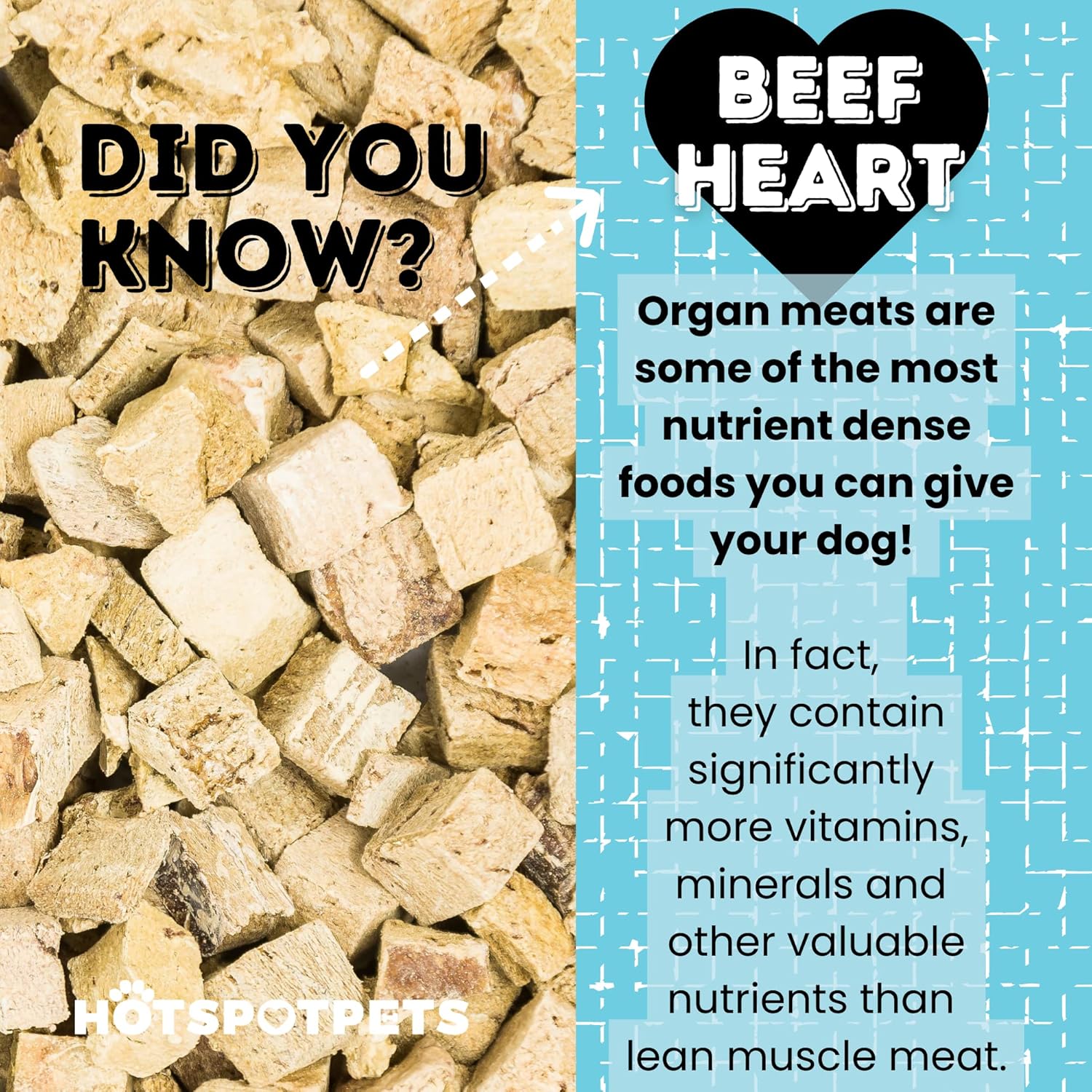 hotspot pets Freeze Dried Beef Heart Treats for Cats & Dogs - 1LB Resealable Big Bag, Made in USA, Single Ingredient All Natural Grain-Free Immune support Treats -Perfect for Training, Topper or Snack