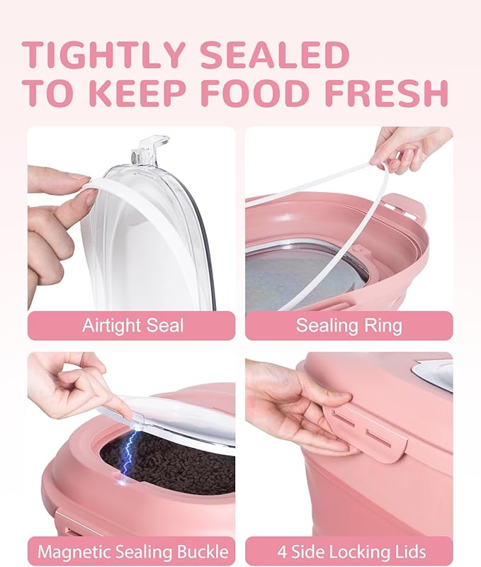- SUPERIOR SEALING FOR FRESHNESS:The double airtight seals and 4 side locking lids offers excellent sealing ensures your pet's food stays fresh longer, free from moisture