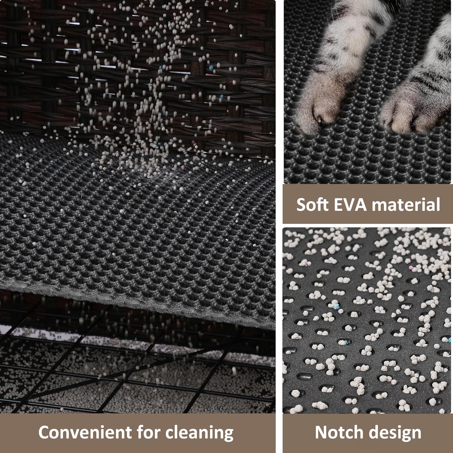 - 【Easier Cat Care】The cat washroom is built with soft litter mat which allows cats to walk comfortably. More importantly, the litter mat is designed with large holes so that the scattered cat litter can drop on the bottom mat. And then you can pull the bottom mat out, dump the scattered cat litter, saving you the trouble of cleaning up scattered cat litter every day.