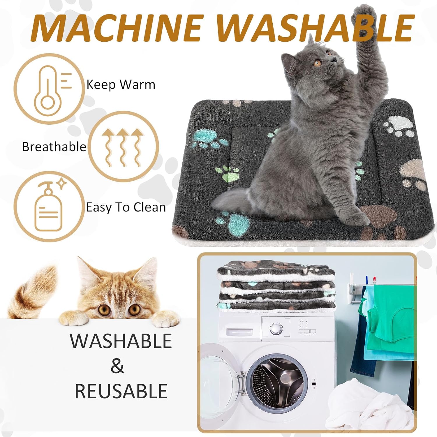4 Pack Ultra Soft Dog Cat Bed Mat with Cute Prints Reversible Fleece Dog Crate Kennel Pad Cozy Washable Thickened Hamster Guinea Pig Pet Bed Mat for Small Animals(21 x 14 Inches,Black)