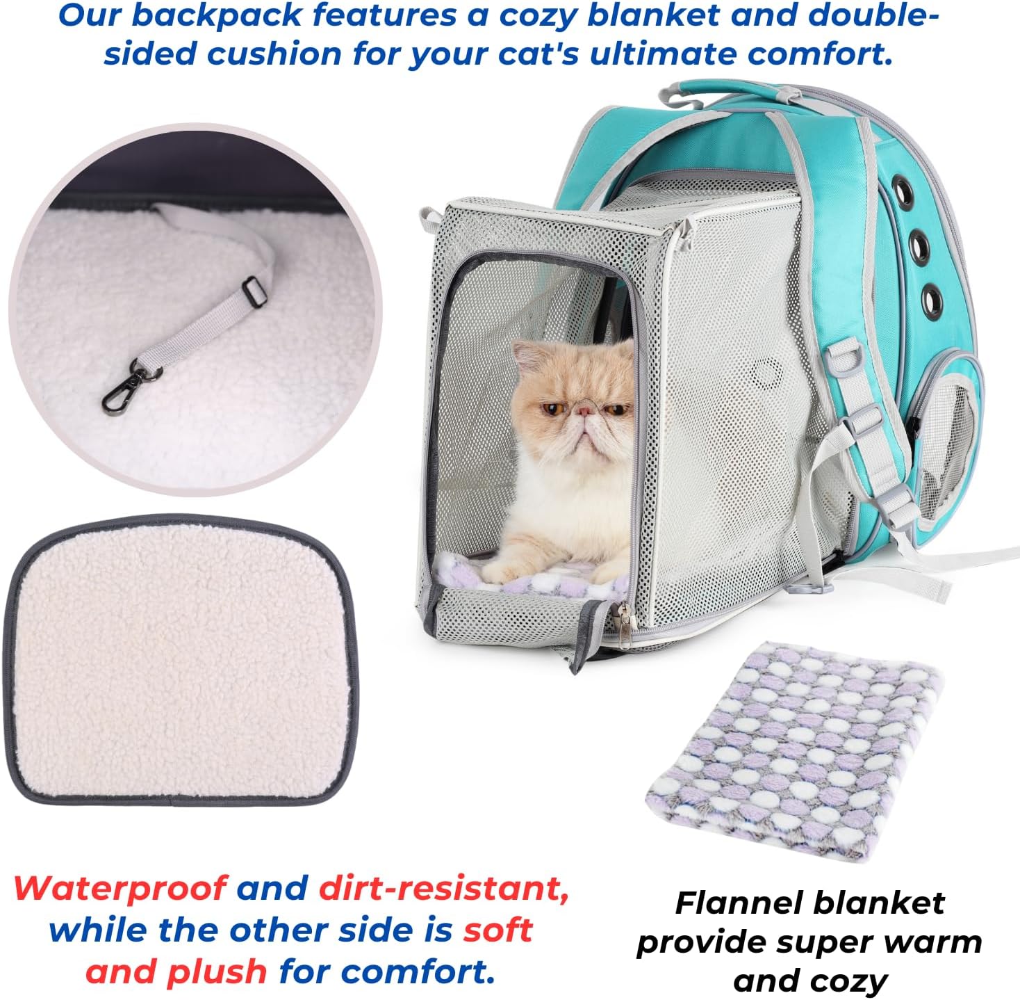 - All-Season Comfort Duo: Hard carrier base with removable hard cushion + plush blanket included; dual-layer padding absorbs shocks during car seat/cabin travel while keeping pets’ cozy