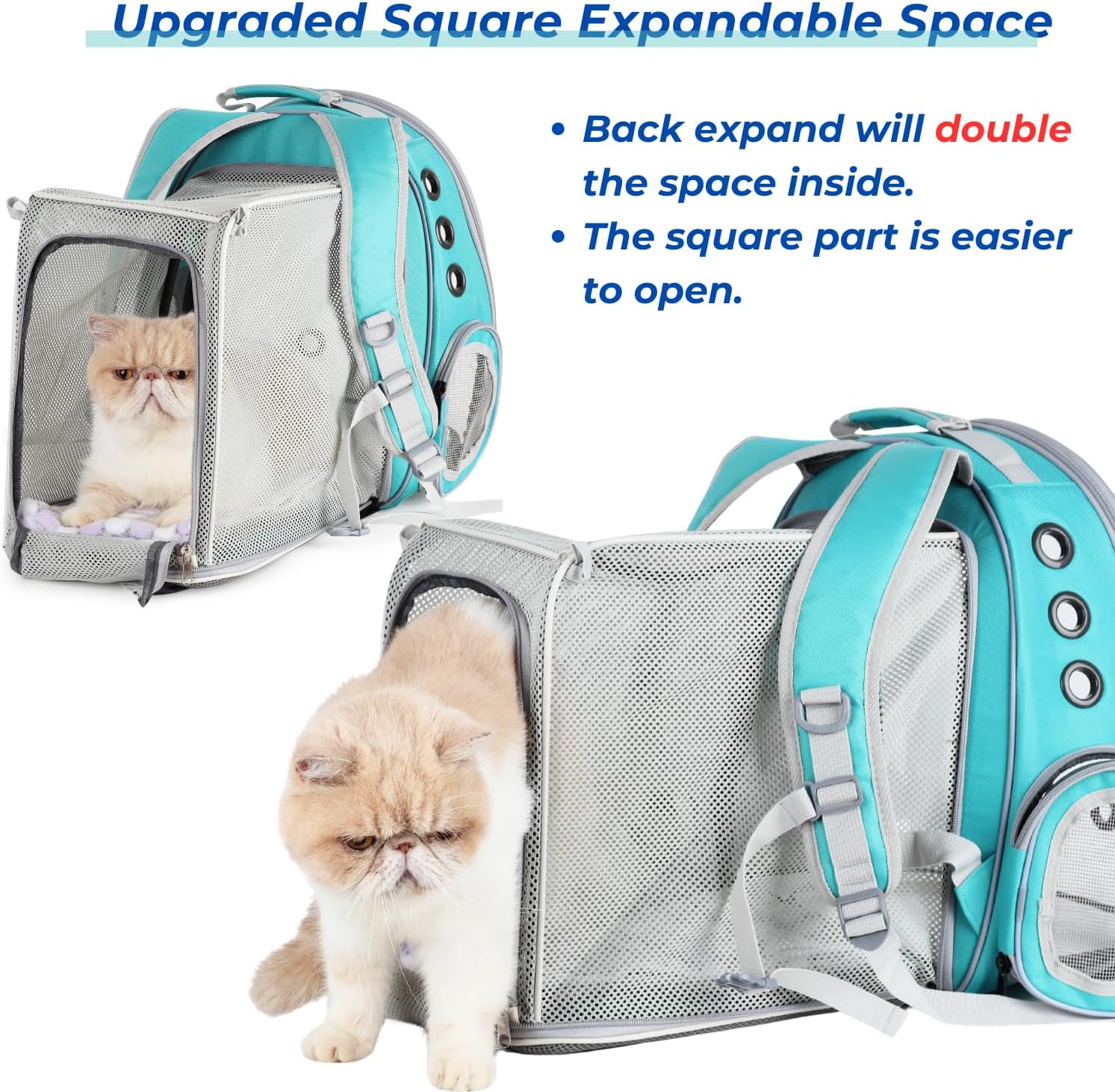 - Large expandable design:Measuring 13"L x 11"W x 16.5"H, Expandable part size is 13''L x 9.5''W x 13''H(square shaped); fits medium cats and dogs up to 14lbs; double the inside space when resting; this helps to reduce anxiety and allows your pet to move around freely