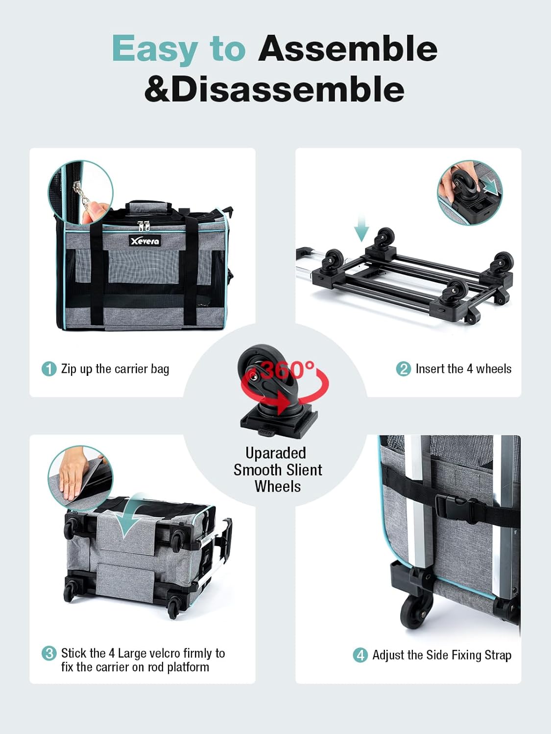 - Easy to Transport: The built-in telescopic trolley handle and easy swivel wheels make it convenient for travelers walking through airports. The rolling cat carrier also features a carrying strap and adjustable shoulder strap for easy pulling and pushing.