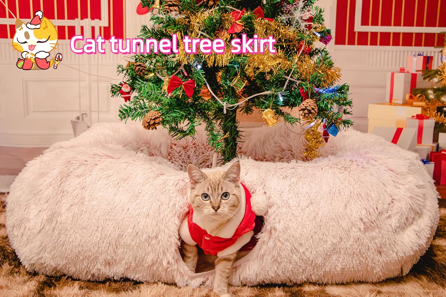 XxingSheep Extra Large Cat Tunnel Bed for Indoor Cats Peekaboo Cat Cave Donut with Center Mat,Pinkish White
