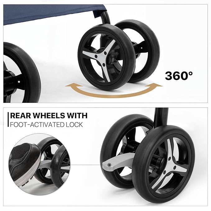- Safety First - Navigate with confidence using our all-terrain pet stroller, featuring smooth-rolling wheels for all types of surfaces and equipped with dependable rear wheel brakes for your pet's safety and your peace of mind.