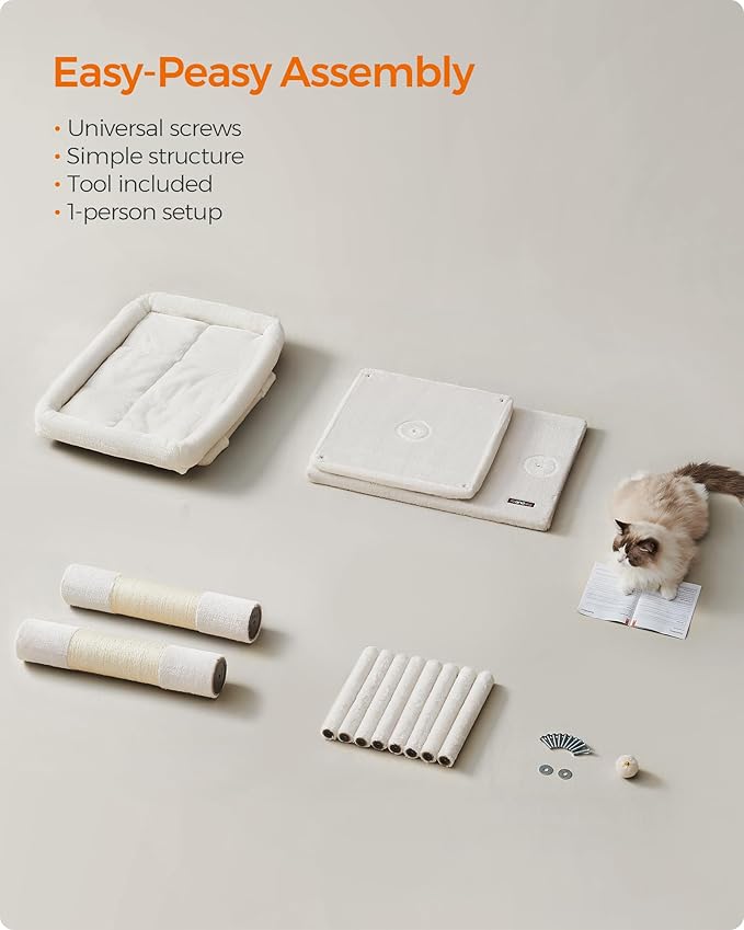 - [Quick and Easy Assembly] With universal screws, simplified structures, and step-by-step instructions, it takes only a few steps to set up this cat tower for indoor cats