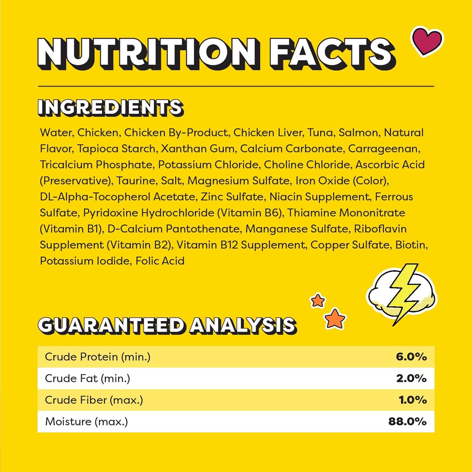 - Cats Can’t Resist: Creamy texture with added vitamins and minerals, and has no fillers or artificial flavors
