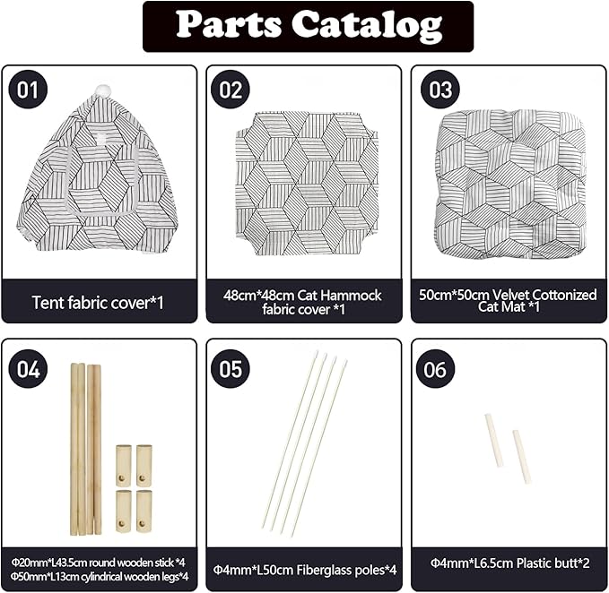 - PINE TREE MATERIAL FRAMEWORK: The supporting wooden poles of animal tents are made of polished natural wood. It is solid, healthy, safe, and safe. Make your beloved pet healthy sleep and suitable for Outdoor Cat TENTS for Indoor Cats.