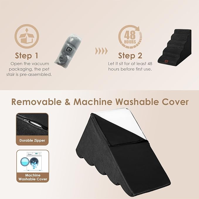 - SPECIFIC AND STEADY DESIGN - 33D density of pure foam make this stair more steady when your pets walk on. The dog bed stairs can provide strong support for pets in the walking process. Low angle slope design can better protect your pet's joints.