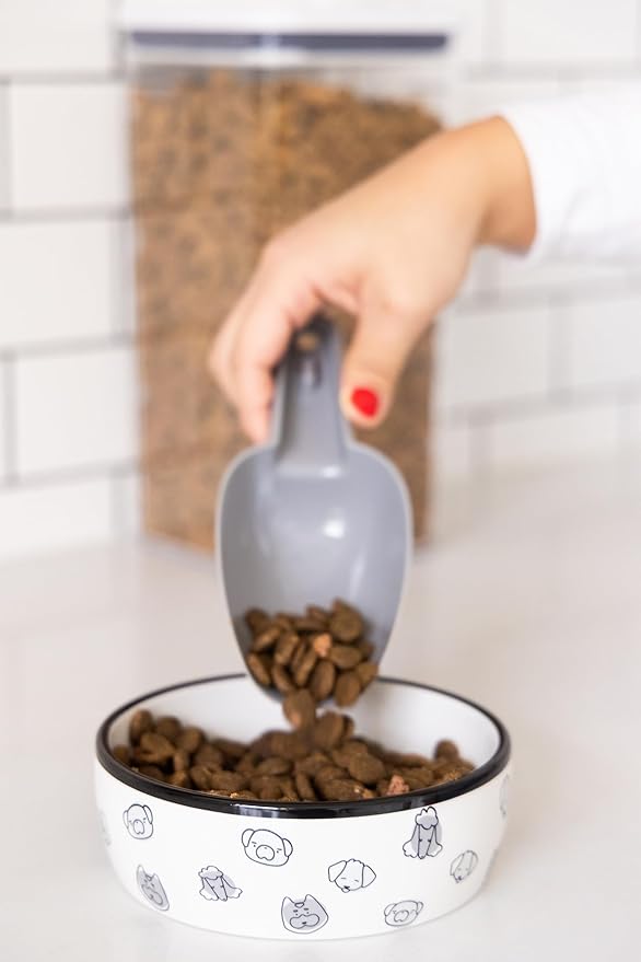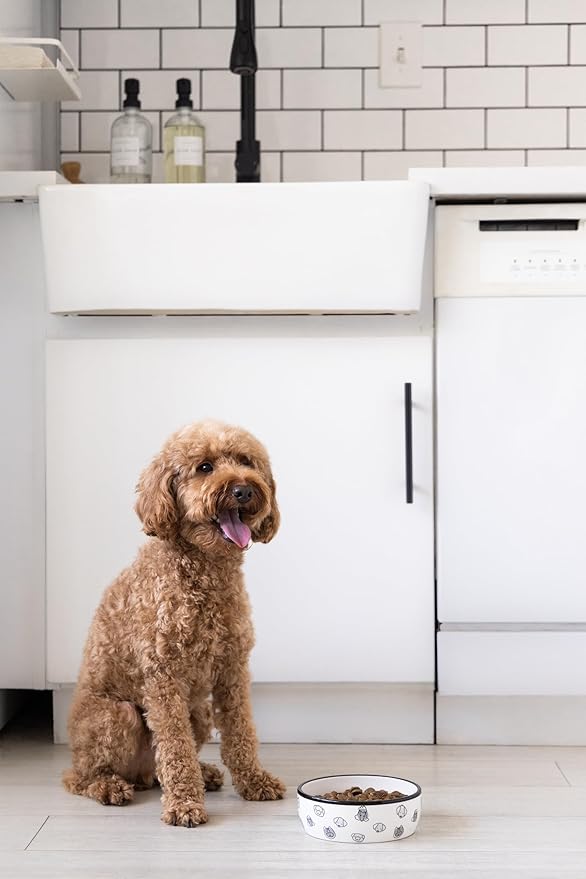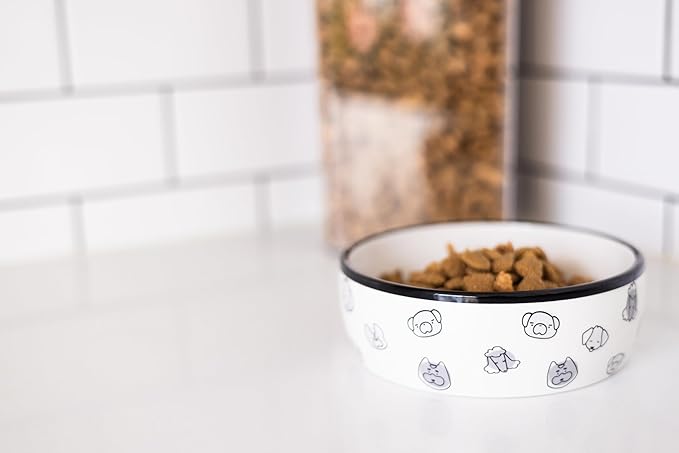- Ceramic Dog Food Bowl: Pearhead’s adorable dog bowl features charming dog breed faces in neutral tones to go with any home décor