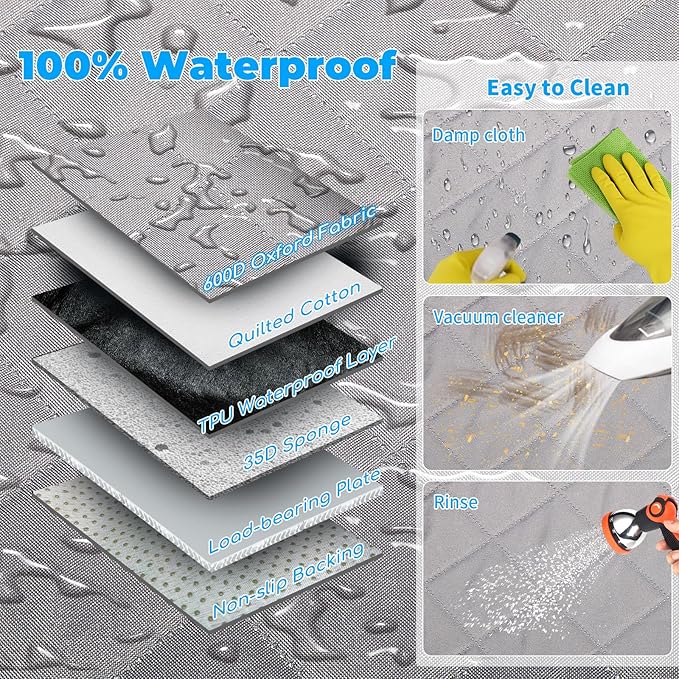 - Safety First & Easy to Use: You can secure your dog with the included dog seat belt. For the safety and comfort of dogs, the dog car travel bed has upgraded all accessories, including 6-layer thickened hard bottom, heavy duty headrest strap and buckle, and durable zipper. 2 velcro seatbelt openings, seat anchors, and non-slip backing keep your dogs from slipping. Easy to clean with a damp cloth or vacuum. The dog back seat extender comes with a carrying bag for storage