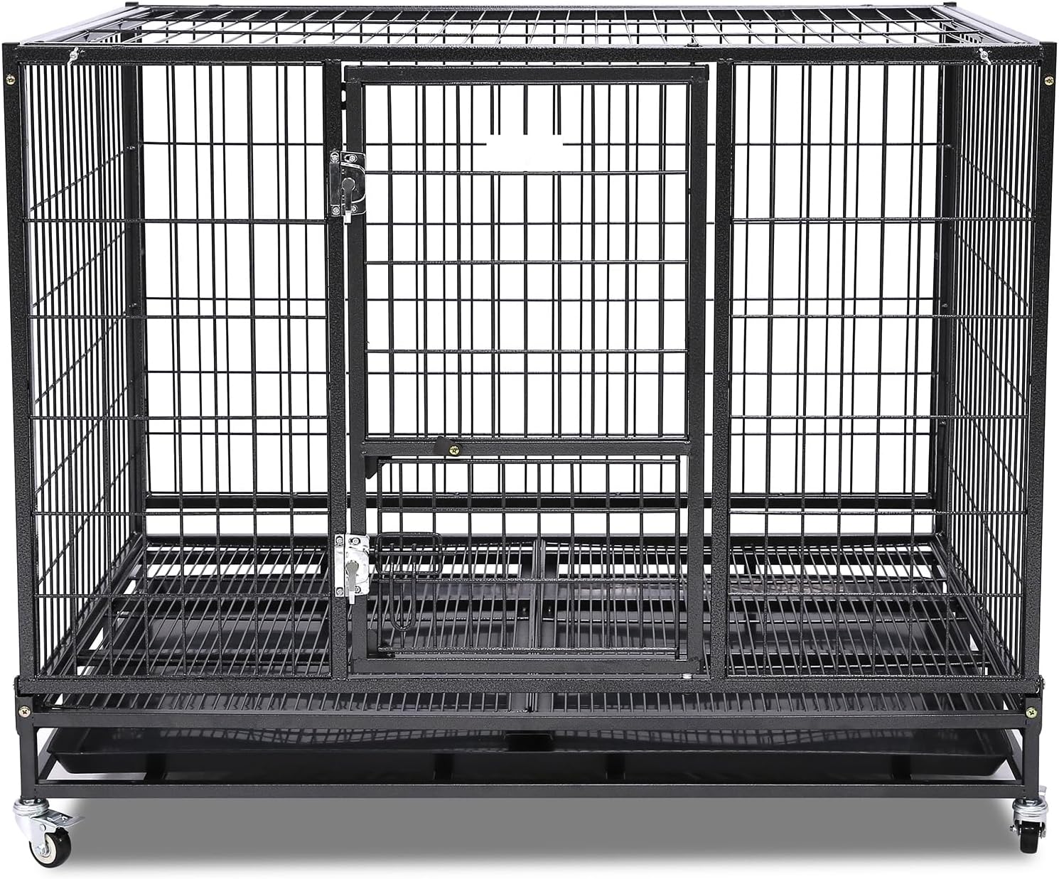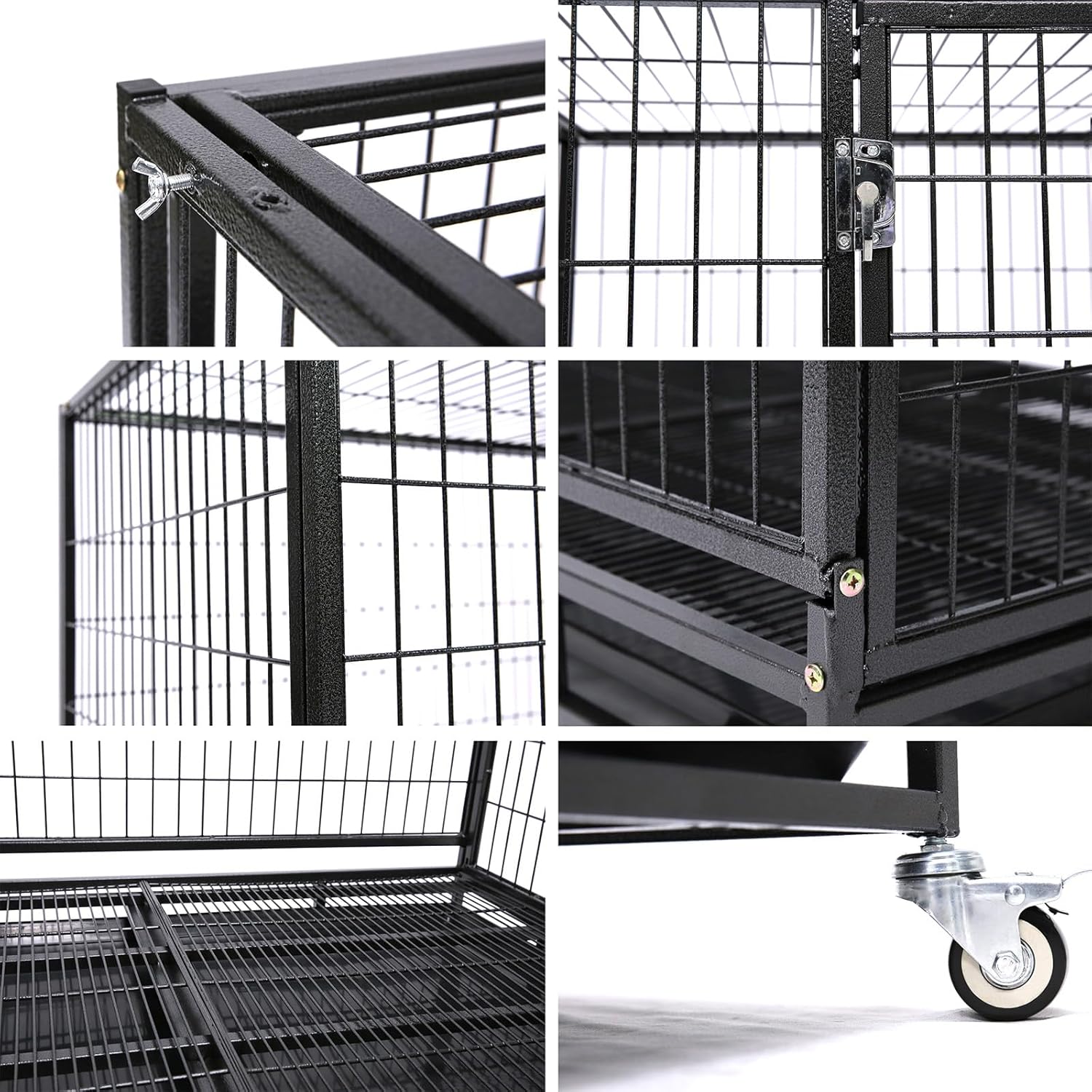 - 360° Rotatable Lockable Casters: For unrivaled convenience, the large dog cage is fitted with 360° rotating wheels that lock into place, allowing for easy relocation within your home without losing stability