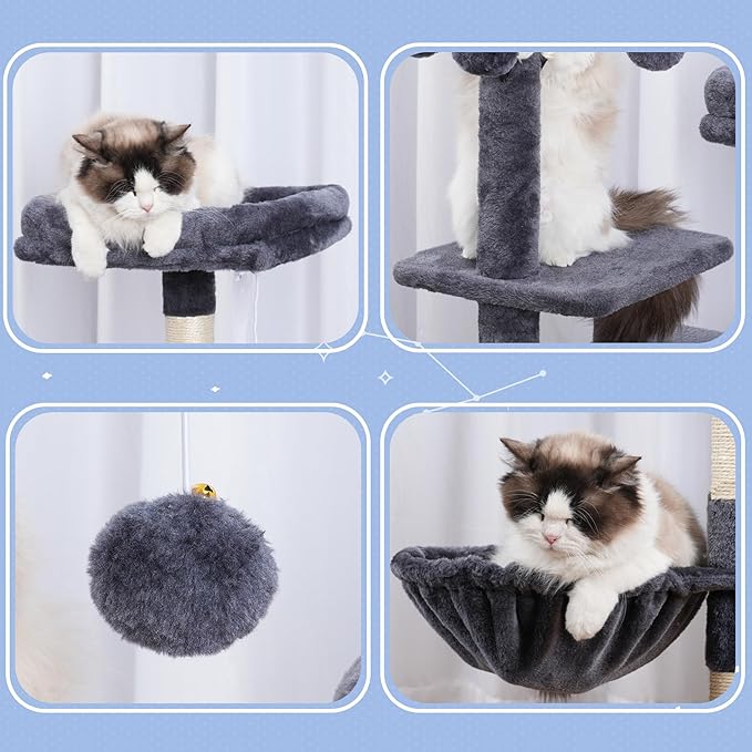Hey-brother Cat Tree Tower, Scratching Posts with Removable Toys, Cozy Condo, Platform, Hammock, Sisal Scratch Board and Ball for Indoor Kittens, 41.3 Inches, Smoky Gray MPJ008SG