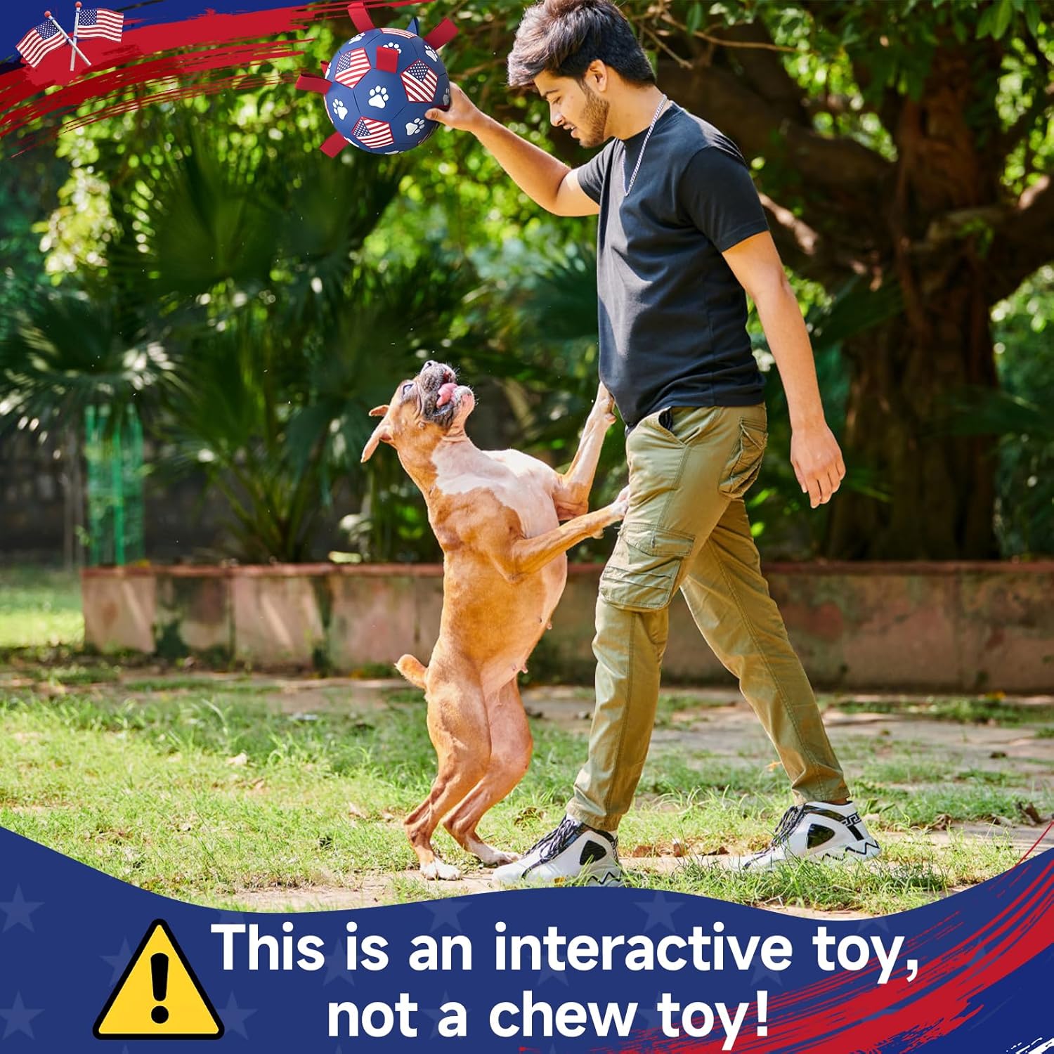 - ⚽Interactive Dog Toys: A perfect dog interactive toy for indoor and outdoor playing, training, enhances interaction with dogs and improve interests. The nylon tabs create an erratic bounce that dogs love to chase, let your dog become more lively, relieve depression, it will increase emotion with your pet.