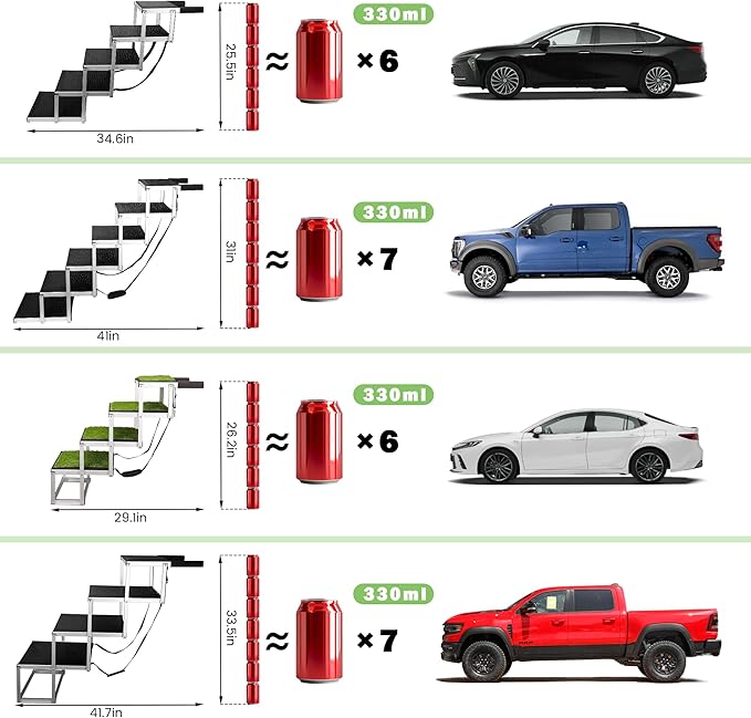 - Safe & Comfortable Transit: Our PetStep ramp features a unique grass-like artificial turf that provides a natural grip for your pet’s paws, reducing anxiety and encouraging confident, comfortable movement into and out of your vehicle.