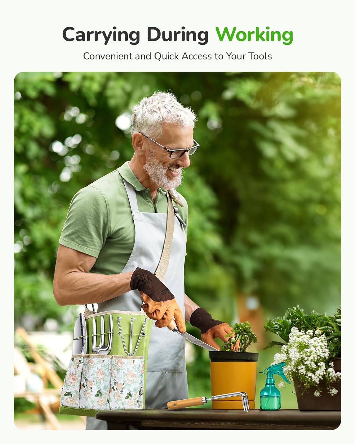 - Ergonomic Crossbody Carry Bag: Offers ample space with 3 external pockets; features a widened, non-slip shoulder strap and adjustable sliding buckle to reduce shoulder fatigue; portable toolbag making gardening more convenient.
