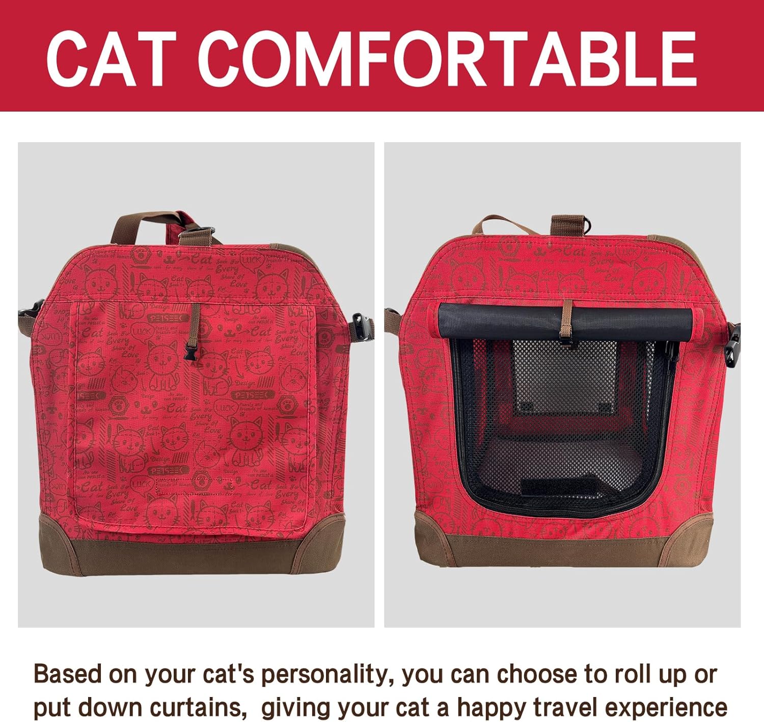 Extra Large Cat Carrier Soft Sided, Portable Small Dog Carrier for 2 Cats, 24"x16.5"x16" Car Travel Folding Comfortable Design, Red