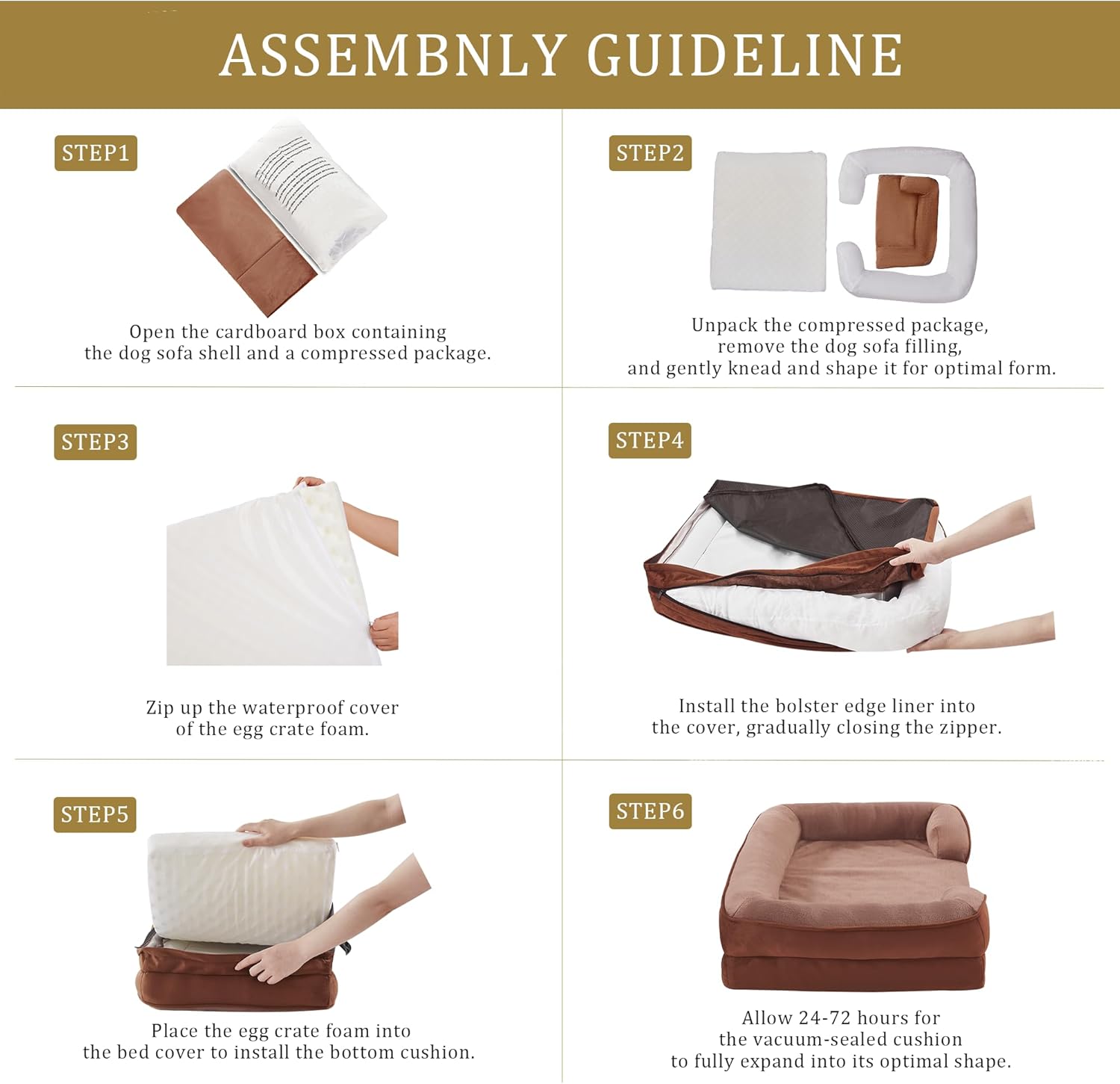 Bedfolks Orthopedic Dog Bed, Waterproof Dog Sofa Bed for Extra Large Dogs, Egg Foam Pet Couch Bed with Removable Washable Cover and Nonslip Bottom, Brown